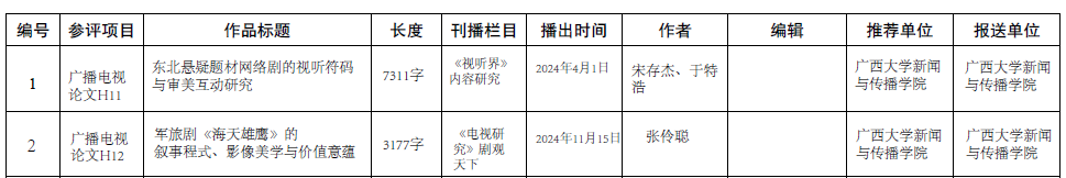 广西广播电视和网络视听优秀作品推选报送公示目录