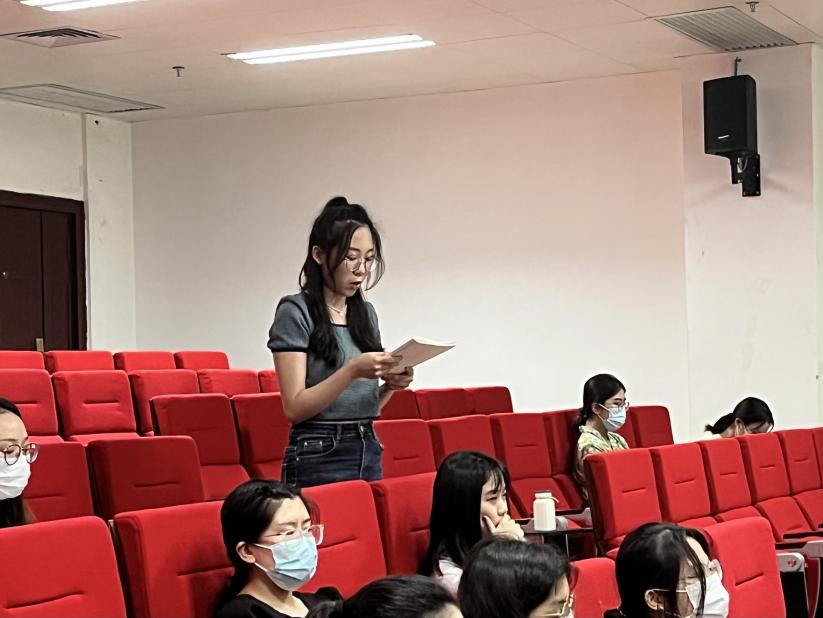 第十一组发言人是来自20级专硕党支部的毛源。她对于新冠疫情中的共产党员责任与历史使命有着深刻见解。新冠疫情后,中国共产党和中国政府坚持人民至上、生命至上,迅速开展患者救治、全员检测、接种疫苗,不惜一切代价维护人民生命安全和身体健康。在抗击疫情的最艰难时刻,成千上万的中共党员主动申请奔赴抗疫一线,要求承担最辛苦、最危险的工作。在中国共产党的领导和中国人民的积极配合下,中国抗疫取得重大成就,中国政府不惜一切代价救治新冠肺炎患者,已建成世界上规模最大的社会保障体系,中国共产党做到了把人民放在心中最高位置。