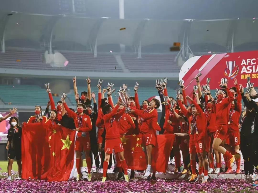 北京时间2月6日晚,在2022印度女足亚洲杯与韩国队的决赛中,中国女足在0:2落后的劣势情况下,凭借下半场出色的发挥,5分钟进两球。中国女足在伤停补时的最后阶段扭转乾坤,压哨绝杀,3:2赢得决赛。这样的结果,给寒冬中的中国足球注入一股巨大暖流,也为新春佳节又添绚丽的色彩。这是自2006年以来中国女足再次捧起亚洲杯,也是曾经的中国女足球员水庆霞担任主教练以来获得的第一个洲际冠军。中国女足逆转韩国女足夺冠之后,时隔16年重夺亚洲杯冠军,是队史第9个冠军,也是刷新亚洲足坛的历史。