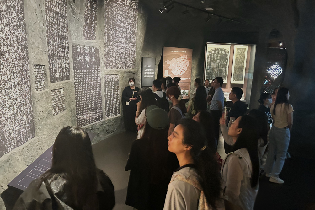 广西历史“悠久、多元、融合、开放、同心”,广西壮族自治区博物馆的展馆内遴选了广西珍贵历史文物,汇集了近年来广西考古的最新研究成果。在参观过程中,同学们认真听取博物馆讲解员的介绍,仔细观看广西古代文明陈列,深入了解广西地区丰富的民族文化。老师引导同学们从民族新闻与文化传播的角度,思考如何更好地传承和弘扬中华优秀传统文化,促进各民族交流交往交融。