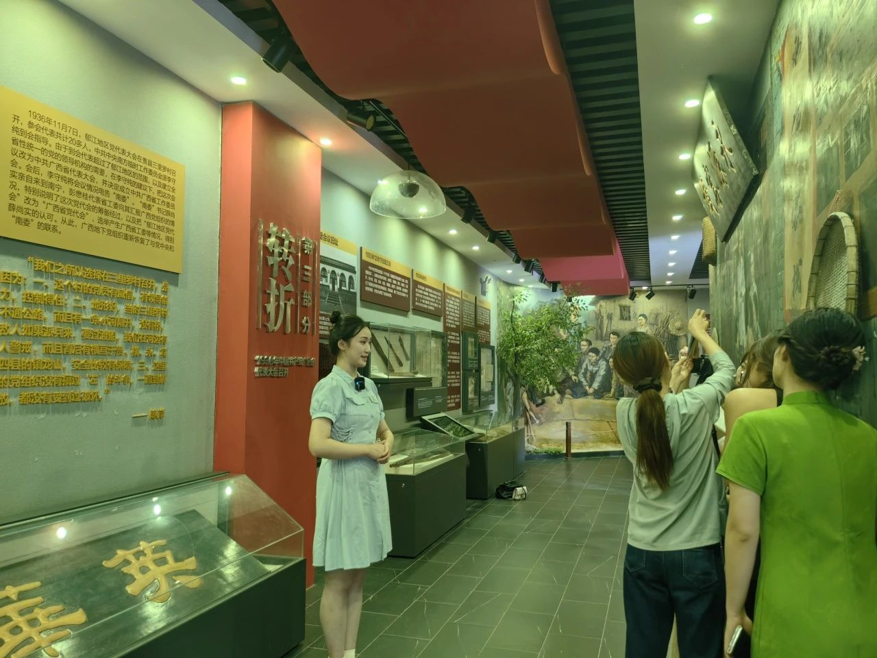 罗村会议旧址位于贵港市覃塘区三里镇,曾经,广西党组织在革命低潮期通过召开罗村会议力挽狂澜,现在,罗村会议旧址已成为广西壮族自治区级文物保护单位及多个教育基地。此次“行走的思政课”打破了以往老师在教室中给员工授课的常规模式,通过现场教学、实地探访和互动体验,让员工们在历史遗迹中感受革命先烈的奋斗精神,接受深刻的思想政治教育。课程中,刘梦娟老师与几位员工讲解员带领员工们全方位地参观了罗村会议旧址,包括原先的会址、新建的展览馆以及配套的附属设施,深入了解1936年广西党组织在艰难困境中恢复与发展的历史。从“初心”的萌芽,到“孤艇”般的坚持,再到“转折”的曙光,实践团在实地探访中深刻感受到了中国共产党人在逆境中不忘初心、坚持信仰、勇于斗争的伟大精神。