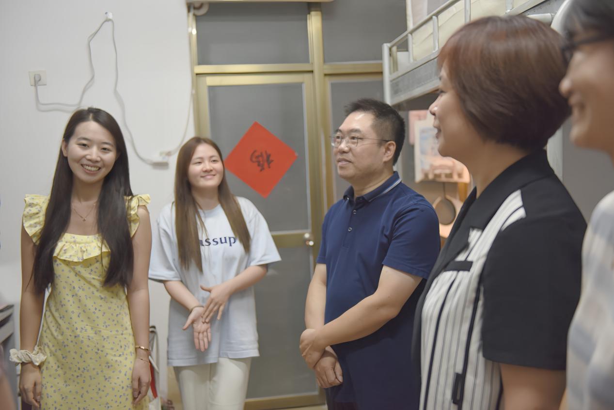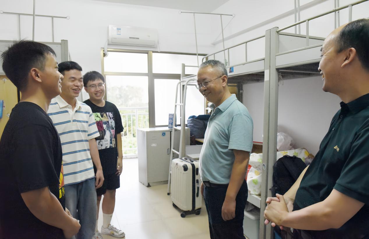老师们带着关怀与问候,走进了一间间新生宿舍,同新生亲切交流,询问他们对新环境的适应情况。“住得习惯吗?” “生活上有没有什么困难?”一句句贴心的话语,瞬间拉近了与新生们的距离。