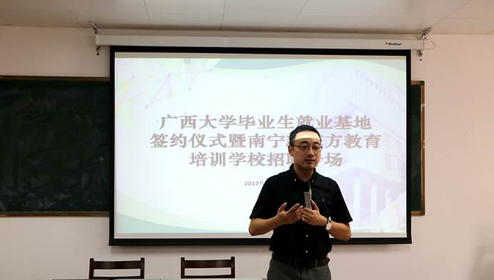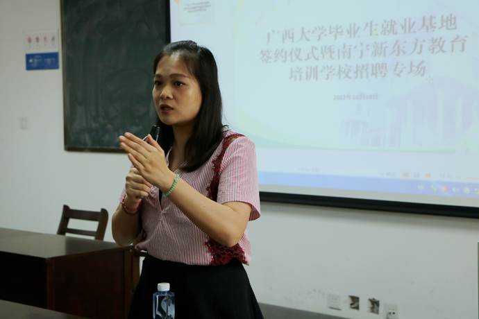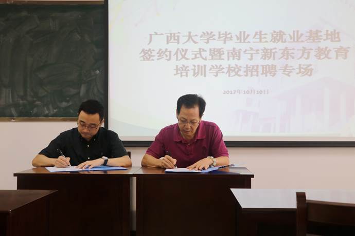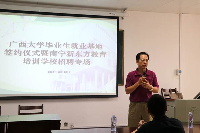 10月10日下午3时,伟德bevictor中文版bevictor伟德与新东方教育科技集团南宁公司的伟德bevictor中文版毕业生就业基地签约仪式暨新东方教育科技集团南宁公司招聘会在新闻大楼510教室举行。