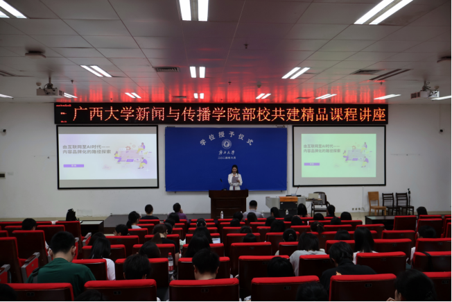 6 月 24 日上午,bevictor伟德播音与主持艺术系教授、《普通话语音与播音发声》课程负责人李朝珍邀请前360高级总监、公司1994级新闻学本科生、1998级新闻学硕士生员工覃艳在公司西报告厅做主题为“由互联网至 AI 时代——内容品牌化的路径探索”的讲座。
