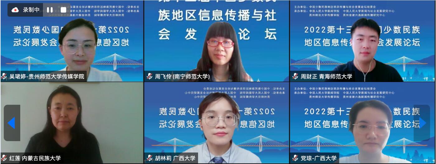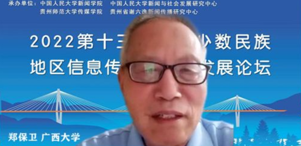 7月22日,第十三届中国少数民族地区信息传播与社会发展论坛以线上会议方式在贵州师范大学传媒公司举行。伟德bevictor中文版特聘君武荣誉教授、中国少数民族地区信息传播与社会发展论坛荣誉理事长郑保卫,党琼助理教授以及硕士研究生胡林莉、王子璇参加了论坛并作学术发言。