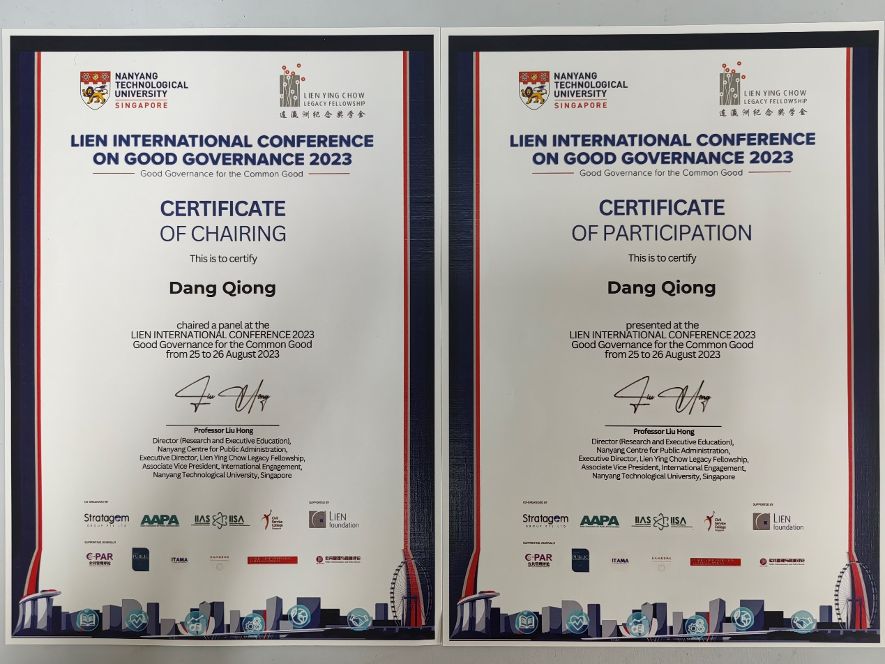 8252023年新加坡连氏善治国际学术会议在新加坡南洋理工大学举行。公司助理教授党琼参加本次国际会议并作学术报告,同时受邀担任分论坛四的主持人。
