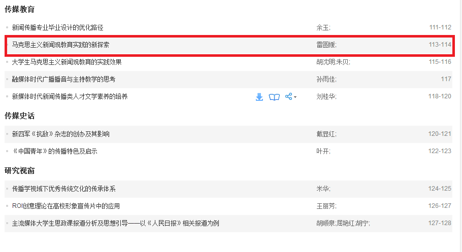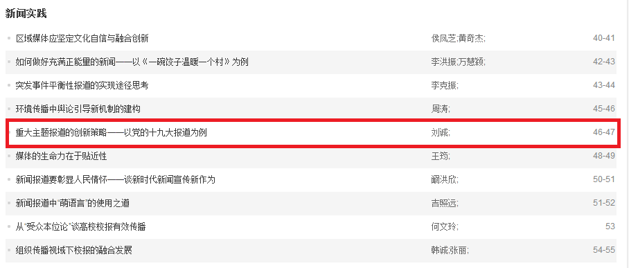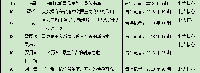 吴海荣、汪磊、刘晓慧、覃哲、雷圆媛、刘诚六位老师分别在《青年记者》上发表论文