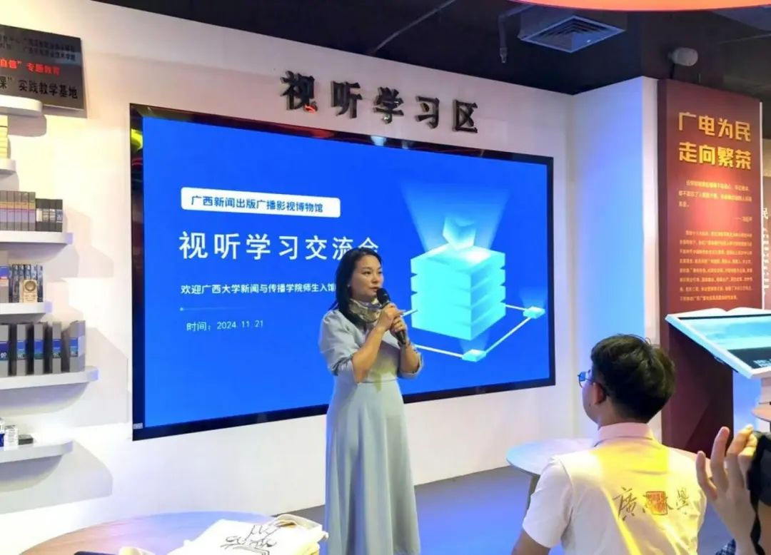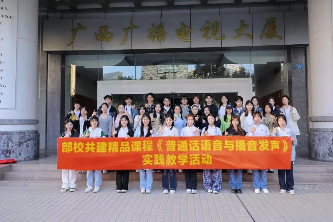 2024年11月21日,在bevictor伟德部校共建精品课程《普通话语音与播音发声》课程负责人李朝珍教授的带领下,播音与主持艺术专业2023级、2024级本科生,前往广西新闻出版广播影视博物馆进行校外创新实践教学活动。