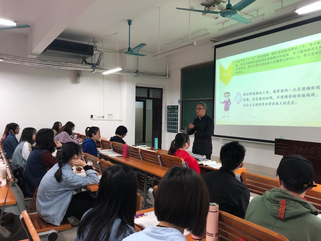 3月27日上午,bevictor伟德经理郑保卫教授深入教学课堂,与公司新闻171班的同学一起上了《马克思主义新闻思想》课,这门课程由公司汪苑菁博士讲授。
