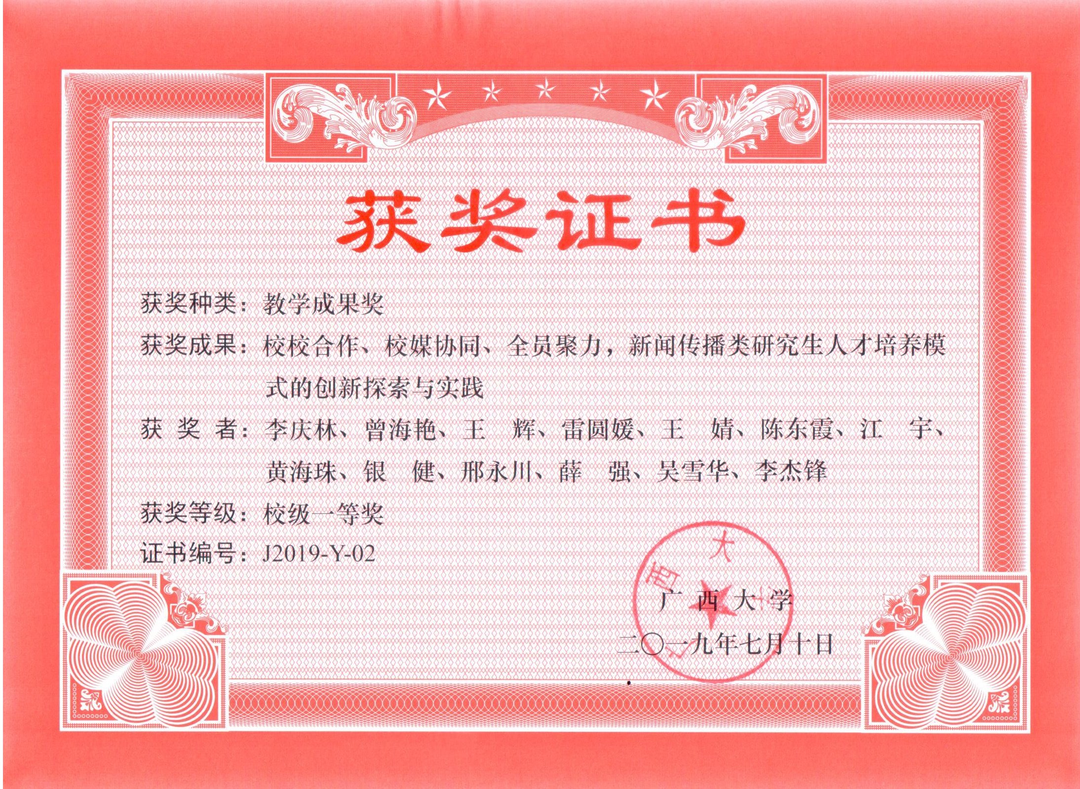 该教学成果是指2015年以来,公司努力构建的公司产品模式,即校际协同、校媒协同、校内协同。这包括:与华南理工大学bevictor伟德跨校联合、与人民网校媒协同,以“两广论坛”“广西新媒体实验室”以及自治区级研究生示范建设项目新媒体创新创业教育暨联合培养基地为抓手,构建资源共享、学用结合的新闻传播类研究生一流培养平台。同时,公司也在不断加强与对口支援高校的密切联系,贯通学界与业界,协同导师和学工队伍,旨在培养广西创新型新闻高端人才。该人才培养模式就是公司主动适应当下教育格局和全媒体时代新闻传媒业的重要探索与实践,并在这四年里开创了新闻传播研究生教育的新局面。