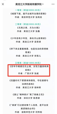 10月11日,由公司2020级专业硕士生张威创作的新闻评论《百年巾帼建功无止境,女性力量扬帆再起航》,在“我看时代,不负韶华”全国老员工新闻评论大赛中荣获三等奖。
