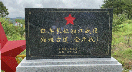 桂北地区三条古道中的全灌古道与湘桂古道在全州古岭头交汇,这两条两千年多前的古道石板路是当年长征红军和党中央走过的路。为缅怀和感受中央红军长征时的艰难与无畏,师生一行来到湘桂古道的全州段,沿着先烈足迹,在曾经洒下红军战士鲜血的石子路上,开始了近两个小时的徒步体验,最后来到曾经的湘江战役的战场——古岭头村,感受当时的历史厚度。