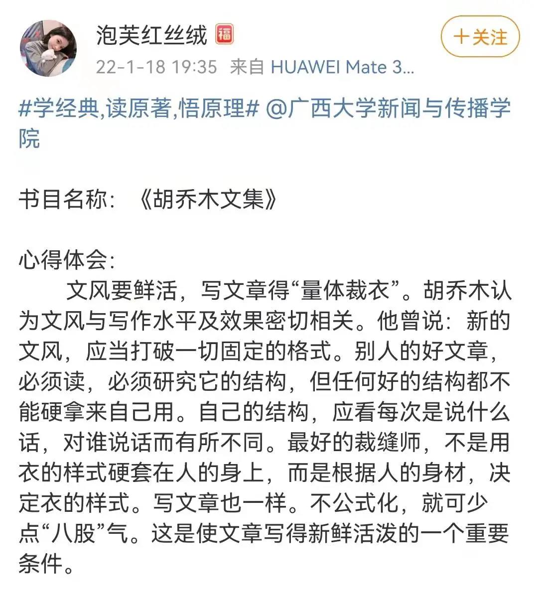 “品读一本经典原著”活动是公司开放式读书教学活动的新拓展,同学们通过对经典名著的阅读和赏析,更加深刻地认识到马克思主义新闻观、习近平新时代中国特色社会主义思想的内涵。