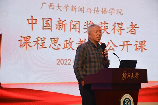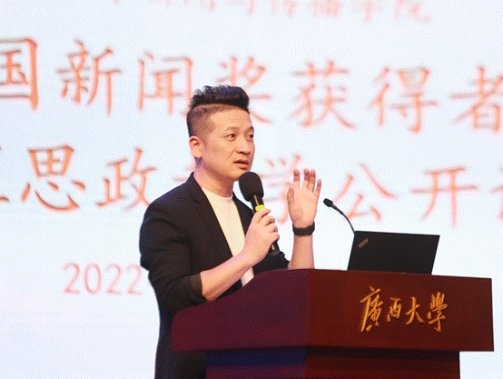 11月15日,公司邀请获得第32届中国新闻奖广西4件获奖作品的主创者到公司举行课程思政教学公开课。教学公开课在学院融媒体中心进行,公司领导、全体专任教师、研究生和本科生代表近百名师生参加听课。活动由播音与主持艺术系主任宋存杰老师主持。