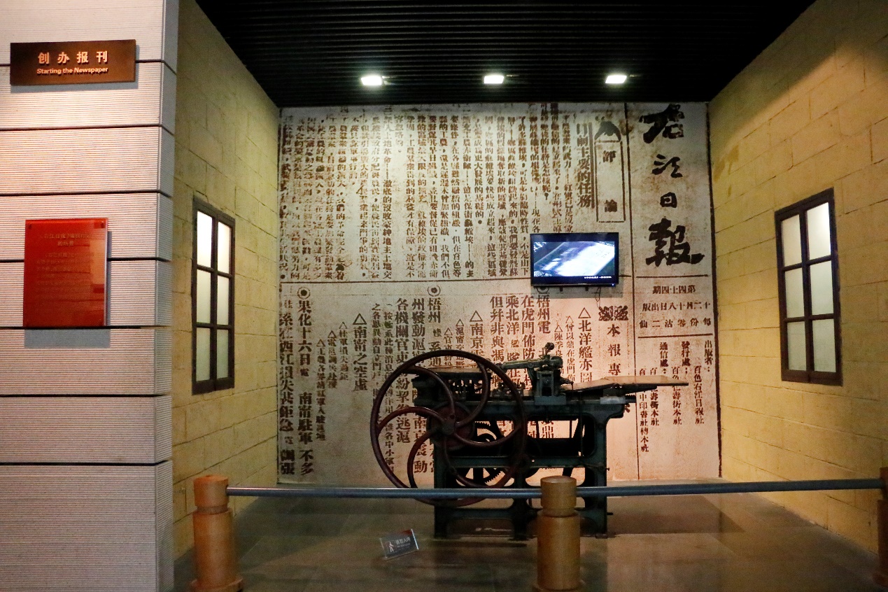 在参观过程中,一台老式手摇油印机引起了同学们的注意。这是1929年红七军政治部曾用过的手摇式铅字印刷机,用于印刷红七军前委机关报《右江日报》,该报也成为了红军创办最早的一张铅印报纸。讲解员介绍到,“红七军为了积极开展社会宣传活动,当时的宣传就是采用画漫画、写标语以及办报纸的方式。《右江日报》是中共广西前委于192911月初在百色创办的,并由张云逸题写报名,如今成为了百色市委机关报。”在百色起义中,正是《右江日报》发挥了巨大的舆论宣传作用,激励了大批先进分子投身到革命当中。
