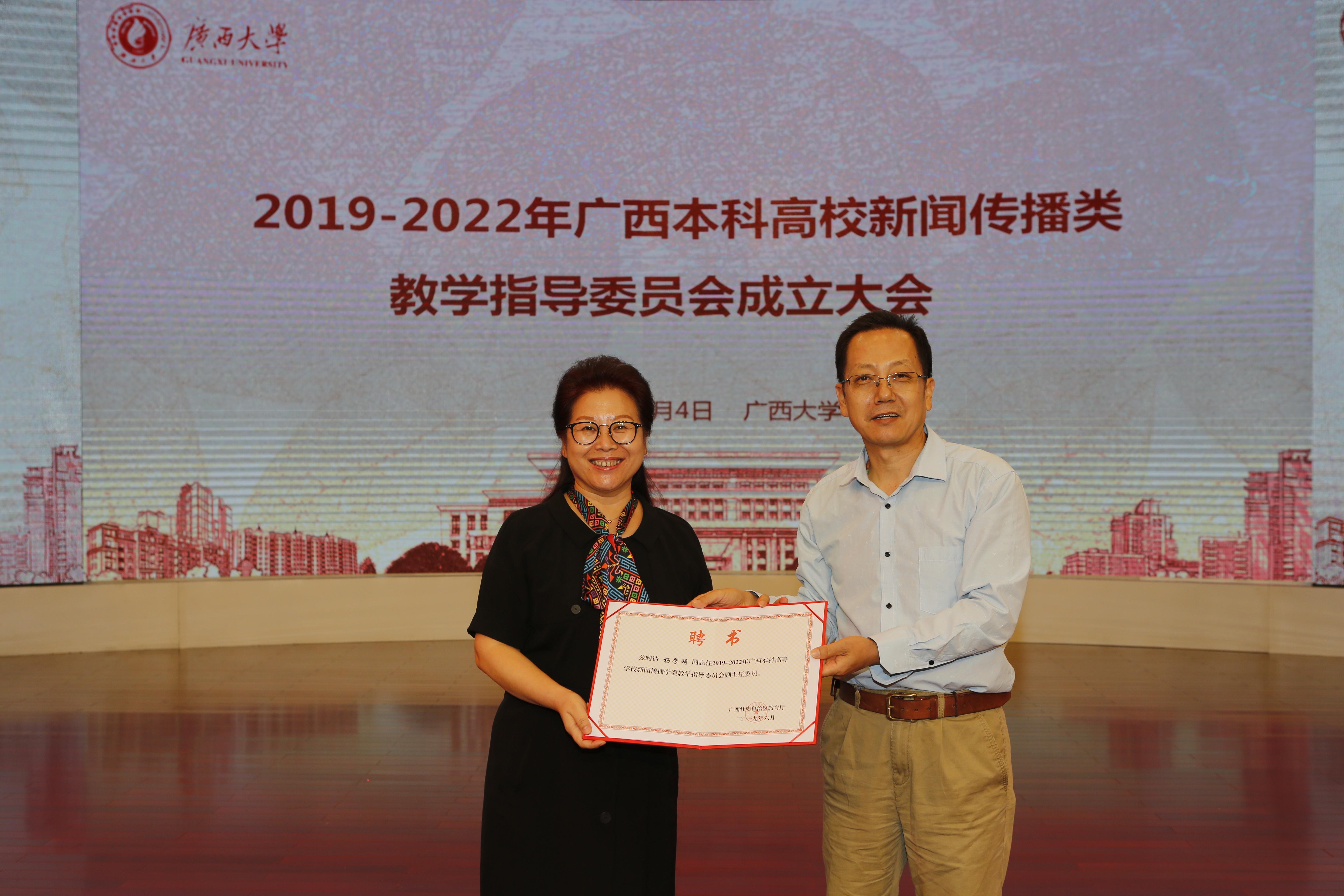 会上,自治区教育厅高教处李国祥副处长、公司教务处黄华存副处长致辞,教育部高等公司新闻传播学类专业教学指导委员会黎明洁委员讲话。广西民族大学教授、教指委副主任杨学明宣布了2019年工作计划。公司常务副经理、教指委主任刘洪向曾建辉等14名委员颁发了2019-2022年广西本科高等公司新闻传播类教学指导委员会委员聘书。会议由南宁师范大学bevictor伟德副经理、教指委副主任周素珍主持。来自区内各高校的新闻传播学学者专家还就团队建设、人才培养、加强与区外教指委联系等问题进行了讨论。
