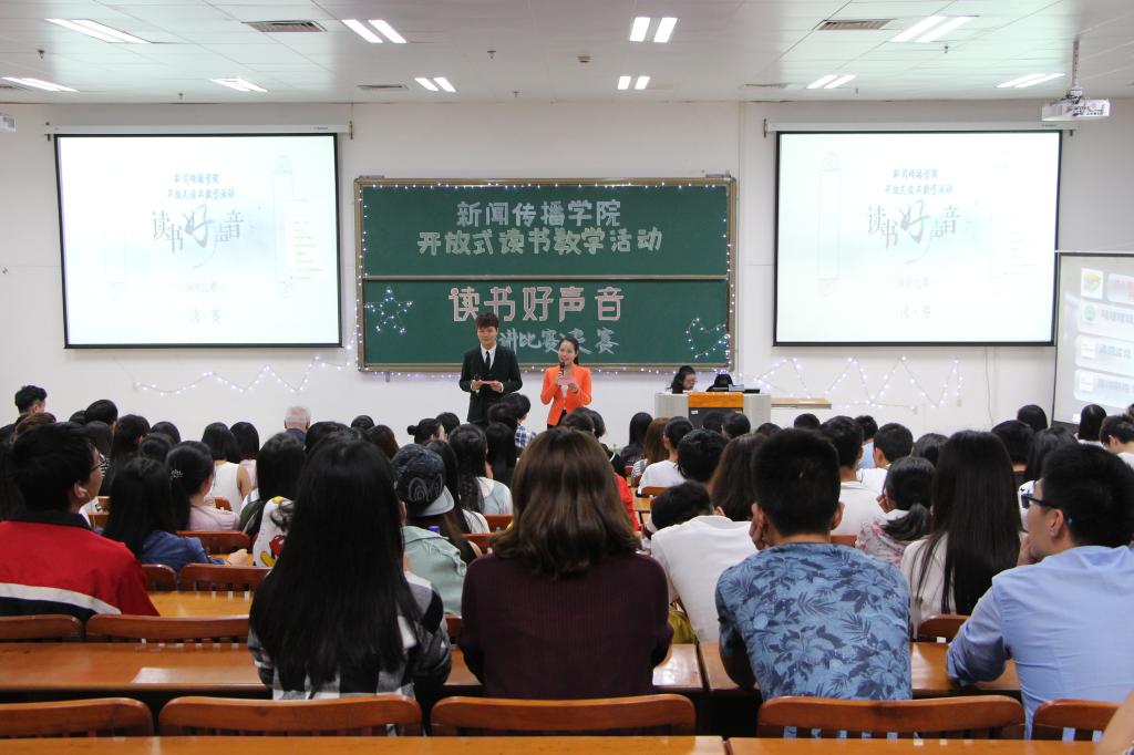11月6日晚,伟德bevictor中文版bevictor伟德开放式读书教学活动之第三届“读书好声音”演讲比赛决赛在新闻传播大楼西报告厅举行。本次比赛由bevictor伟德的曾海艳、李庆林、邢永川、陈东霞、吴灏鑫、丁骋、刘晓慧、雷圆媛、吴欣慧、宋存杰、刘诚等11位教师担任评委。班主任黄海珠、梁江华、张亚堃也参加了本次活动。