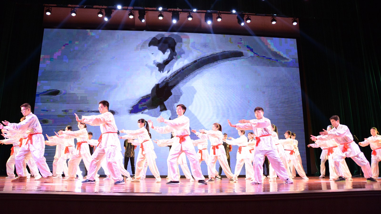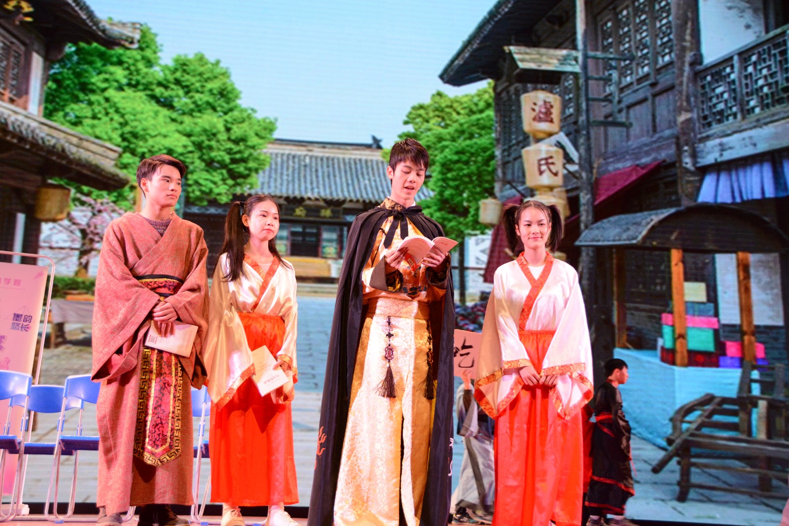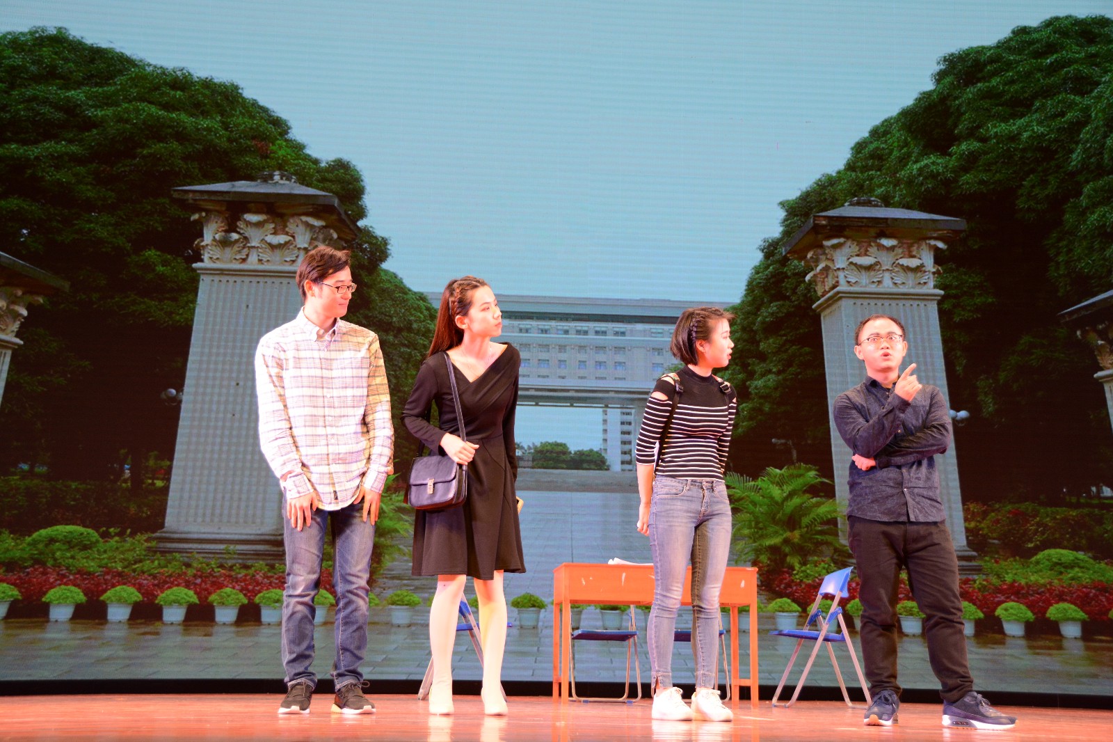 晚会开始,公司舞蹈队用开场舞《HOLIODAY》为今晚的读书晚会拉开了序幕。充满活力的舞蹈将全场气氛带动起来。在第一篇章“书载千秋”,新闻172班用情景剧《党光辉下的一家人》讲述了几代人在党带领下创造幸福生活的故事。随后,17级专硕班的同学架起古筝,换上带有民族特色的服装,“十里桃,八桂情”,展示出不一样的青春风采。“五花马,千金裘。呼儿将出换美酒,与尔通销万古愁!”激昂的朗诵,一声声震撼着同学们的心。配合着灵动的音乐,新闻174班的同学们和武术协会为大家带来了武术操和诗朗诵《武之力,声之形》。