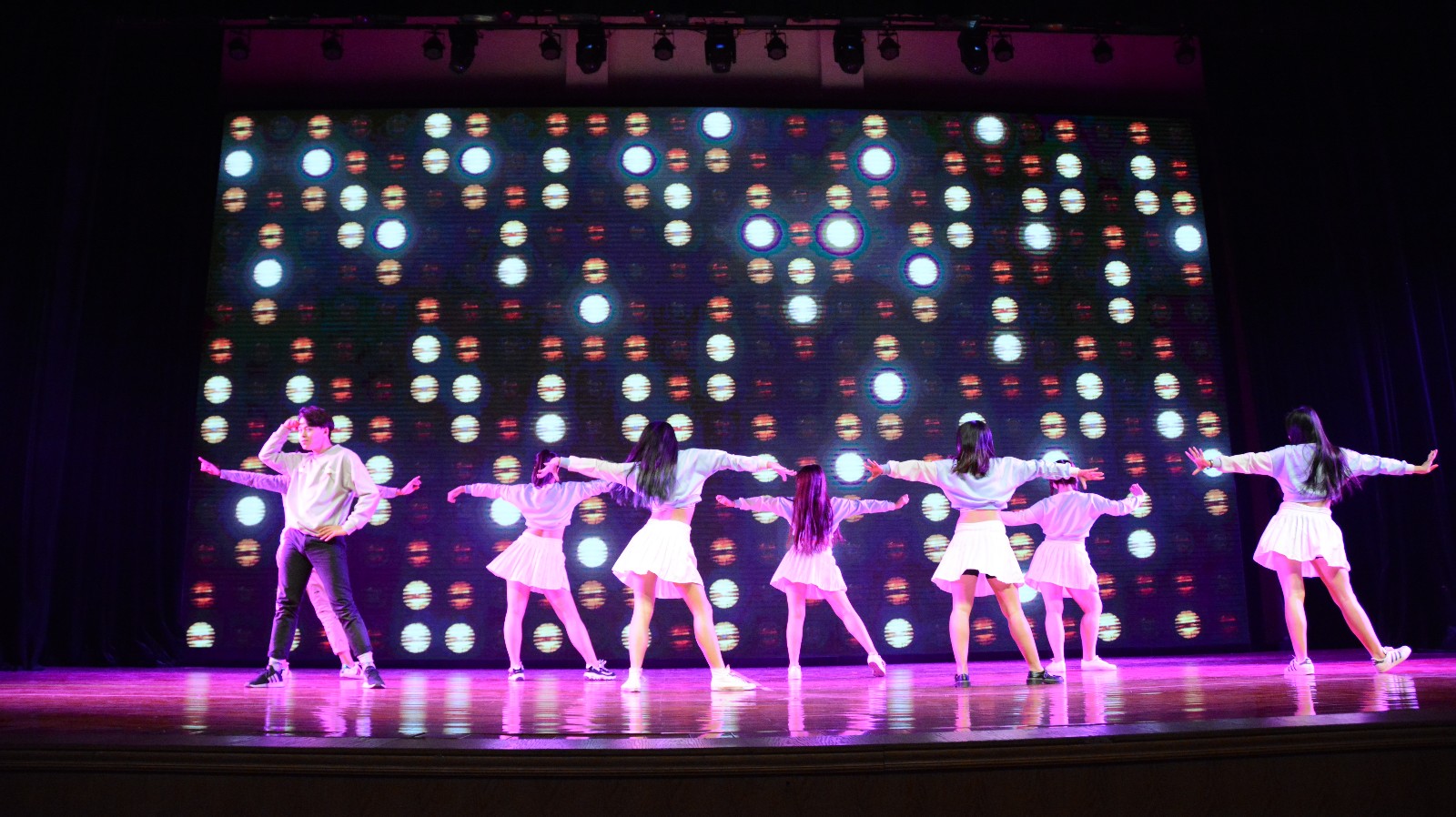 晚会的第三篇章“不忘初心”在研究生会的小品表演《青春中国梦》中开始,研究生们用小品讲述着自己在西大的生活——三五好友相聚,一起讨论自己阅读的书籍。时光正好,我们正青春。接下来,公司舞蹈队为大家带来舞蹈表演《映山红》。红色的背景幕布上闪耀着金色的五角星,台下的同学们看着舞蹈演员的一个个动作,心也随之陷入时而激动、时而悲壮的情感之中。