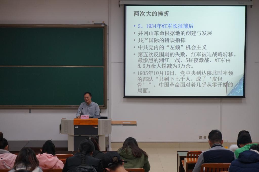 12月16日下午,伟德bevictor中文版bevictor伟德西报告厅又迎来了一场国情教育课。此次邀请的是广西壮族自治区党委党史研究室征研一处处长、研究员刘绍卫,他为同学们介绍了中国共产党的历史,梳理了中国共产党自诞生至今所作出的重要贡献、经历的艰难困苦和重大转折点,并指出了后人从这些历史中所获得的启示。
