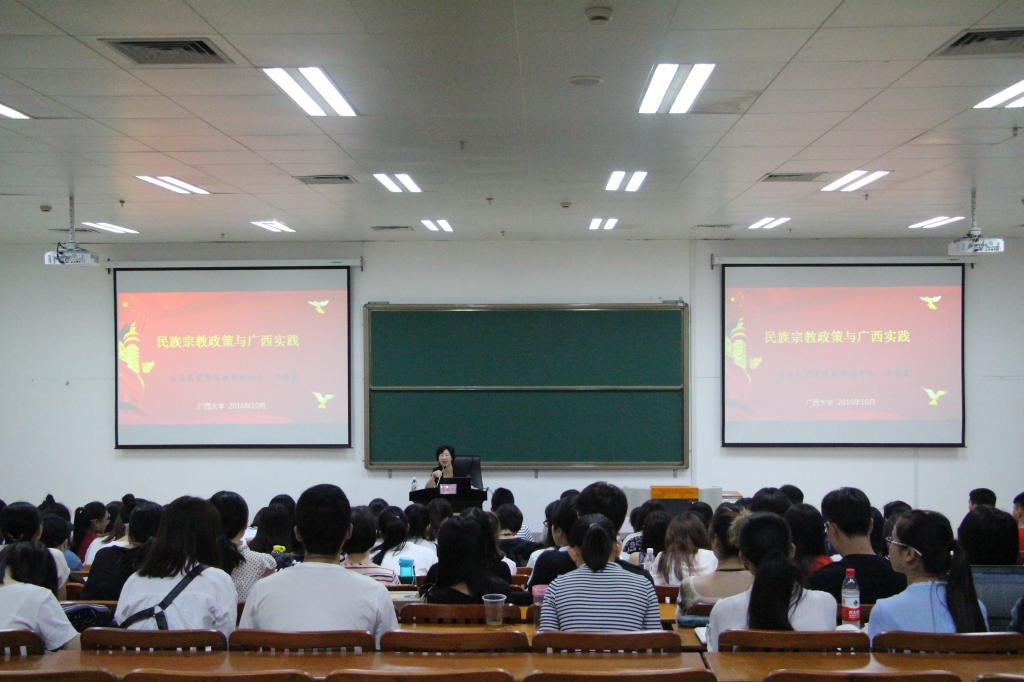 | 自治区党委统战部副部长李银霞为伟德bevictor中文版bevictor伟德学子讲授民族宗教政策教育课 |